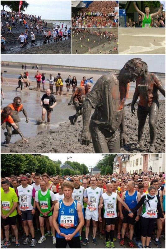 Après un parcours de 3 km dans les faubourgs de ST VALERY(pour étirer le peloton) , nous courons sur la digue avant de rentrer dans le vif du sujet et traverser le 1er champ de vase qui sera suivi de plein d'autres.